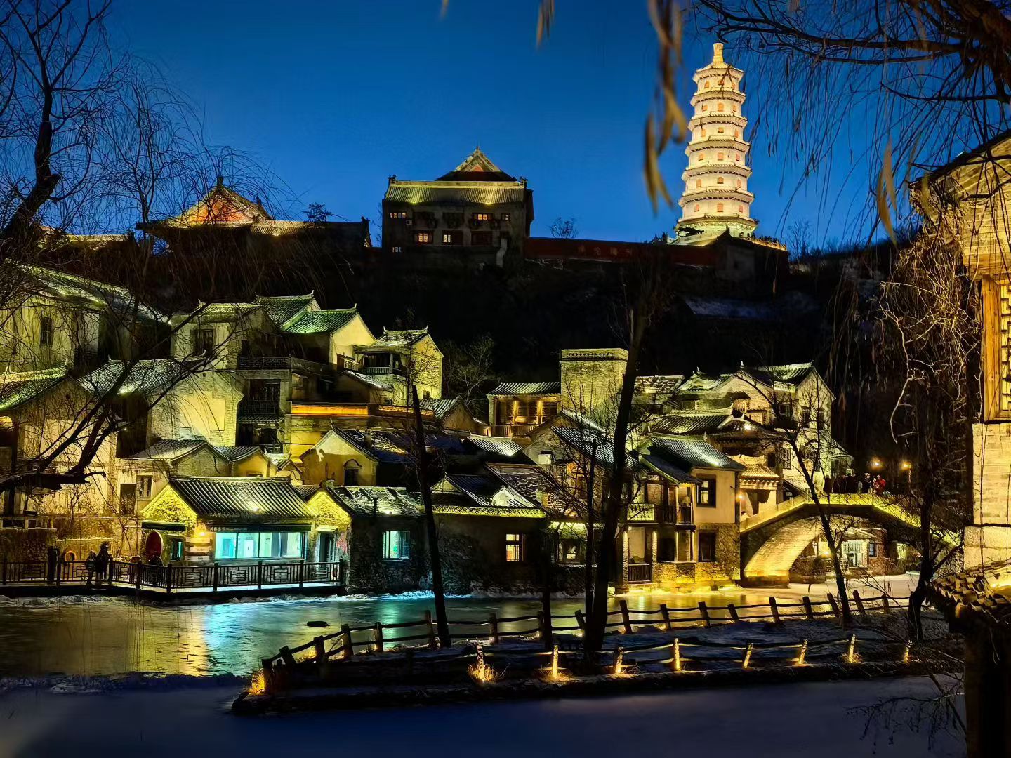 推荐夜游古镇路线:【长城夜景】-【音乐喷泉】-【山顶教堂】-【日月岛】