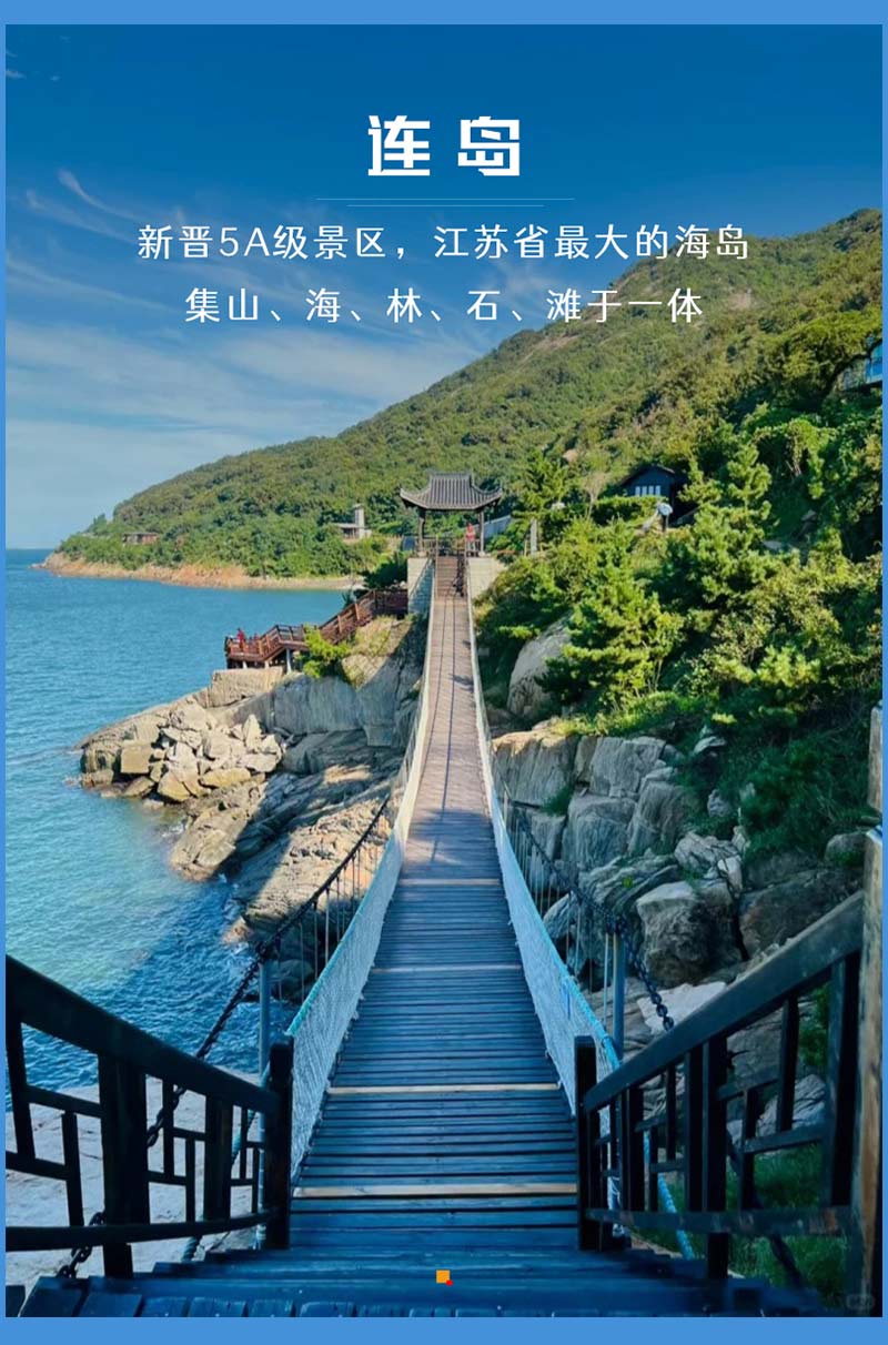 - 下午我们前往国家5A级景区、江苏最大的岛屿连岛景区进行游览。