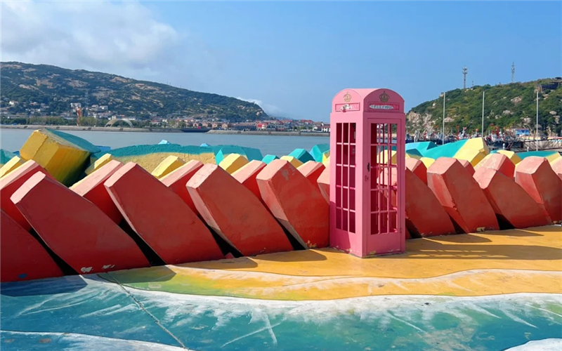 在这里可以参观羊山岛博物馆,展示了羊山岛地区的文化历史、风土人情、科普社教和产业资源,凸显羊山岛海洋地域特色。沿街拾阶而上,可以看到巨幅羲和浴日雕塑、羲和宫,霜降时节。顺着幽长的登山小径,漫步于松林之中,站在观桥台前抚栏凭眺,海天相间处一座大桥映入眼帘,宛如一条巨龙,卧波跨海,飞架南北。最后我们可以来到彩虹灯塔,在拦海大堤、护坡、栈道,绘制彩虹、沙滩、斑马线等元素丰富的文化墙,展示美丽海岛新形象。