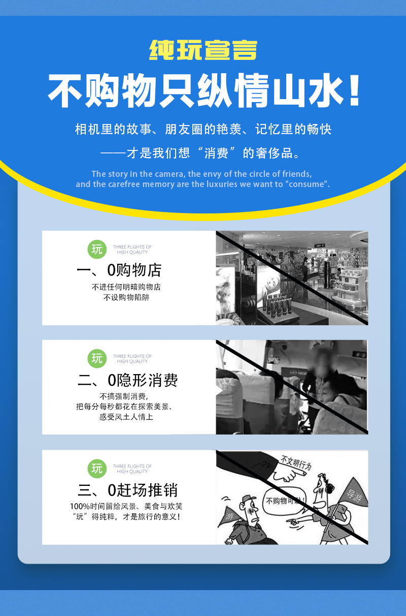 1)本活动属于户外旅行活动,纯玩,全程不进购物店,没有任何形式购物环节,领队也不作购物推荐,敬请谅解;同时本活动所有费用已明示(包括有可能您自愿自费的项目),无其它任何收费,请您仔细阅读费用包含和费用不含内容。