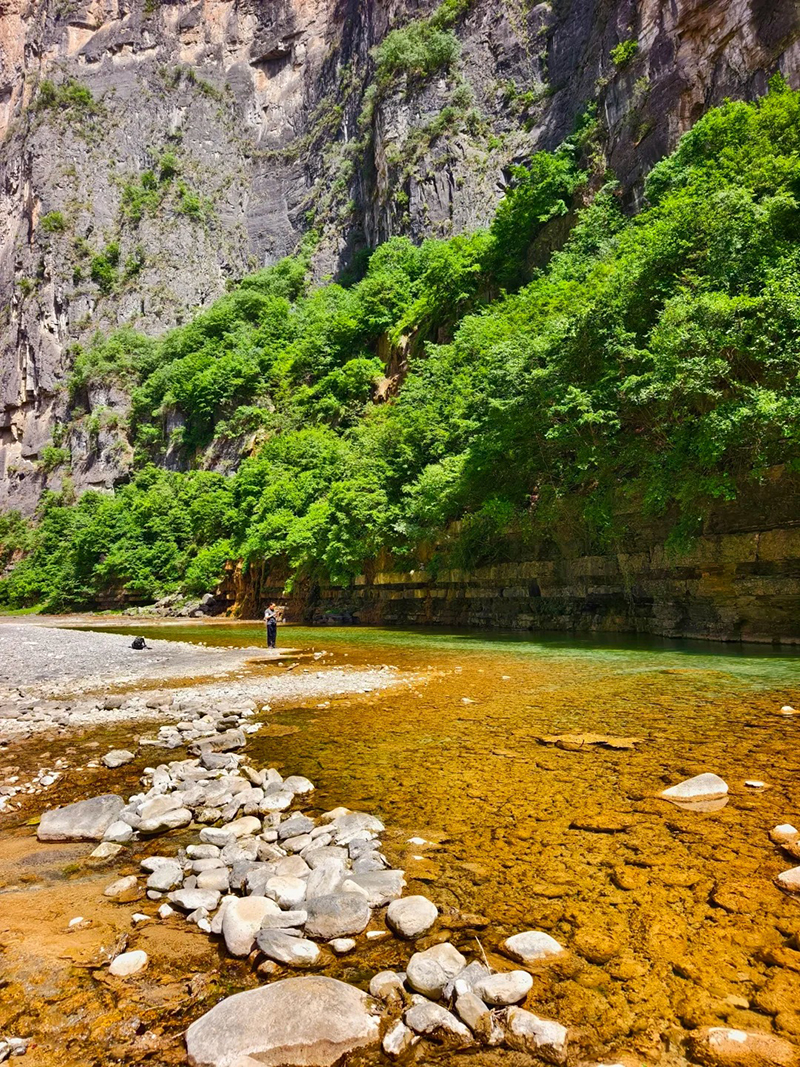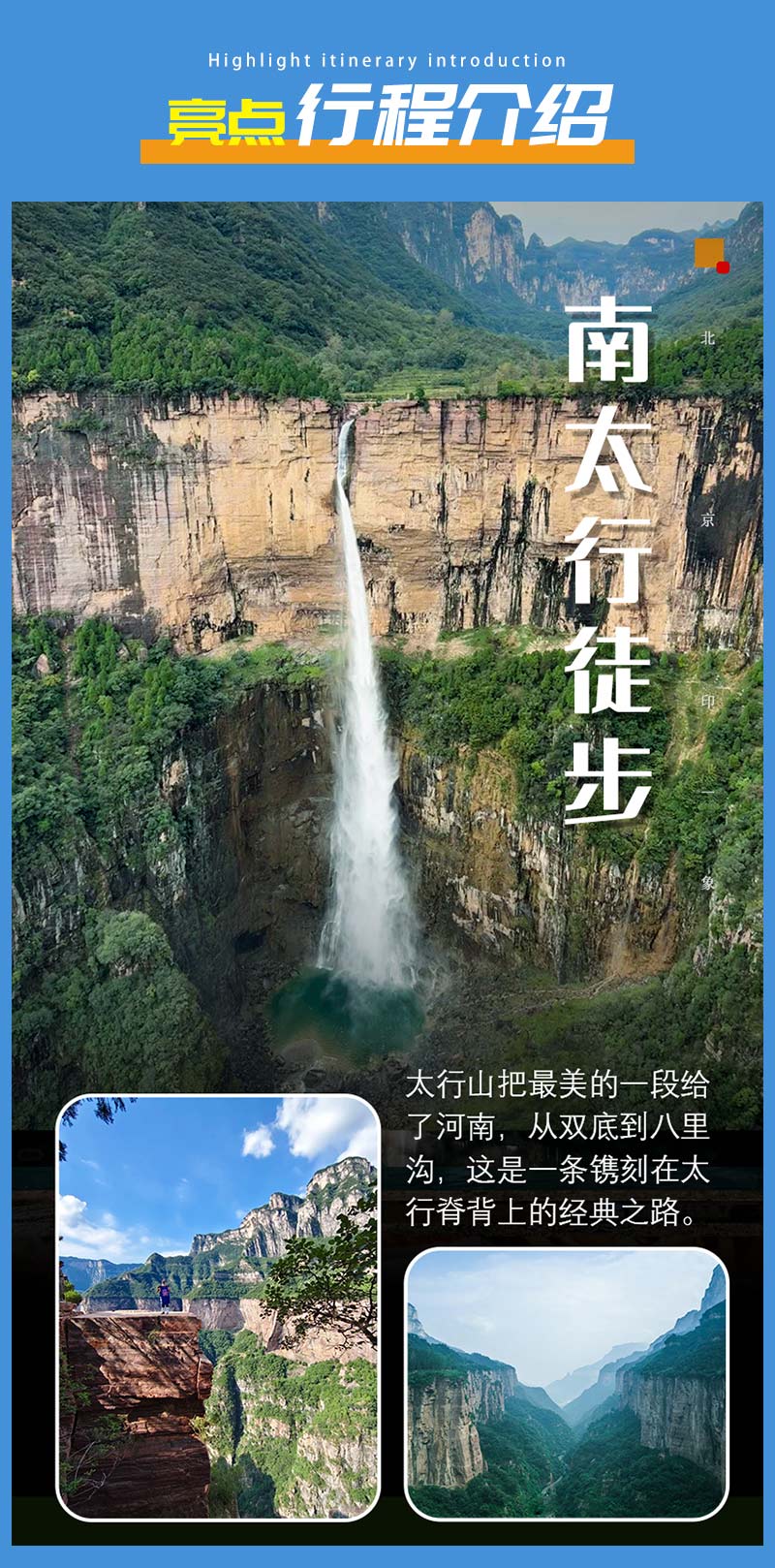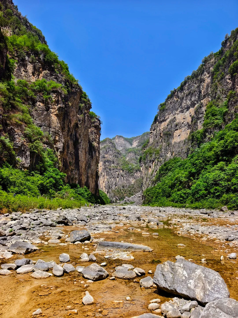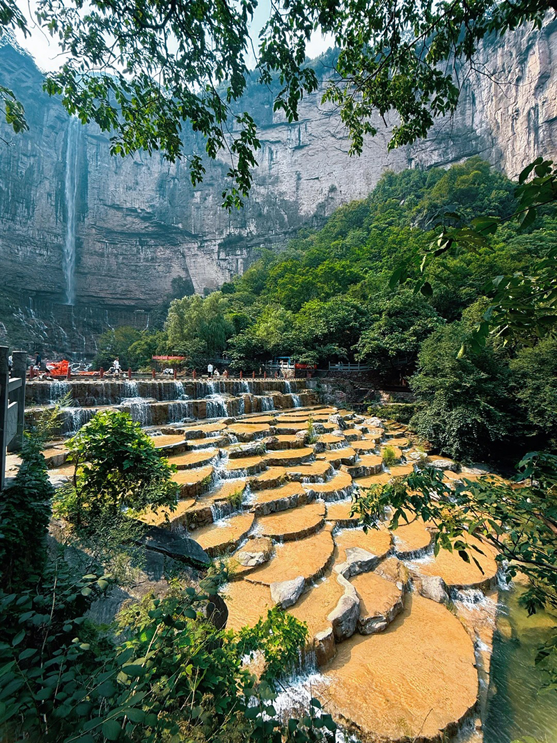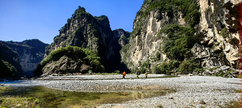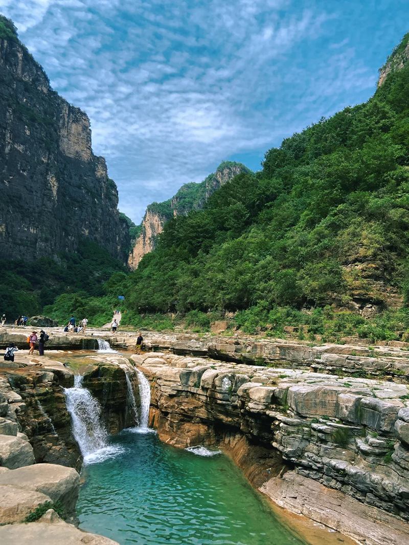 - 早起后继续出发,抵达南太行徒步起点双底村后,在领队带领下开始徒步。一路顺着溪流进入红豆杉大峡谷,途经小壶口瀑布,中午在峡谷中找个合适位置午餐,下午开始爬一小段山了。到了山上,再看看峡谷的景色,壮观极了!