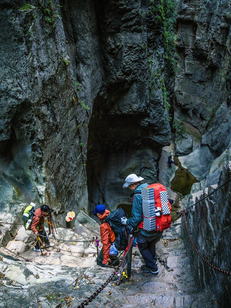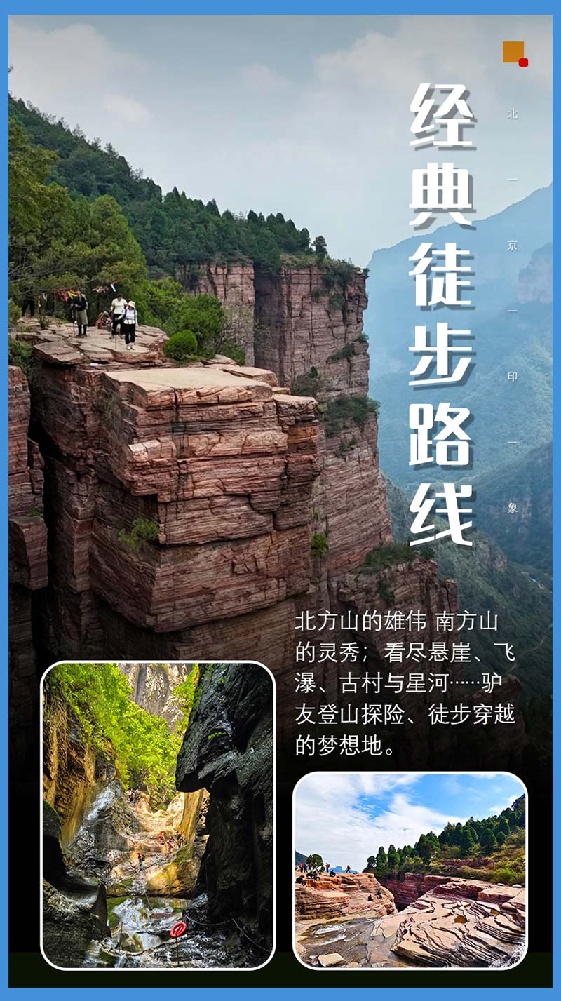 在马武寨感受古寨的沧桑;快速下探至七星潭,邂逅那几汪深谷中的翡翠碧潭;在抱犊村稍作驻足,俯瞰这座云端孤村的遗世独立;随后直面老龙口那令人屏息的垂直绝壁与万丈深渊全景,体验天地之壮阔;最终沿悬崖阶梯疾行而下,冲入八里沟的飞瀑与游人喧嚣之中。全程是对意志与体能的淬炼,在极限节奏中将太行的险、幽、奇、绝尽数收入囊中。