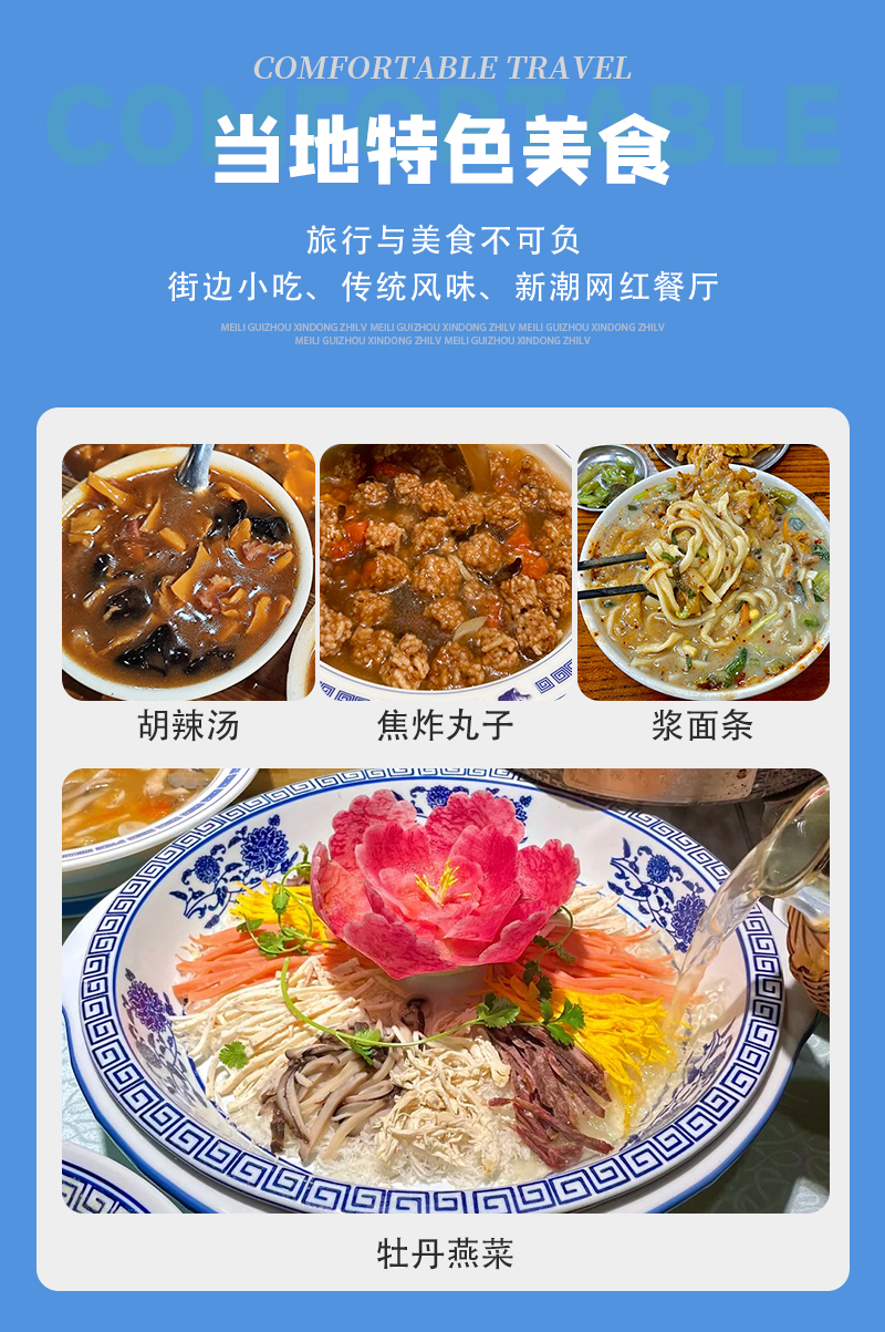 3)用餐:共含5餐(D1早餐+D1晚餐+D2早餐+D2晚餐+D3早餐);