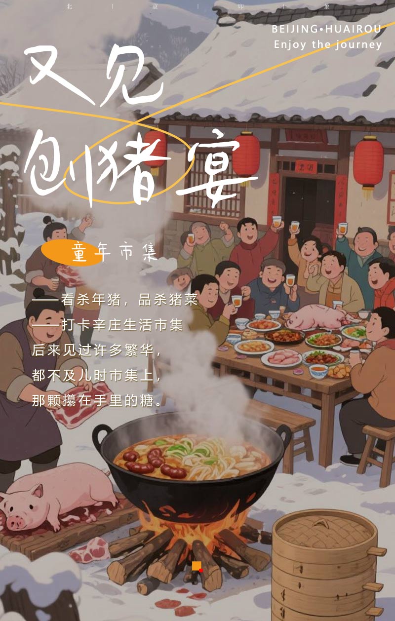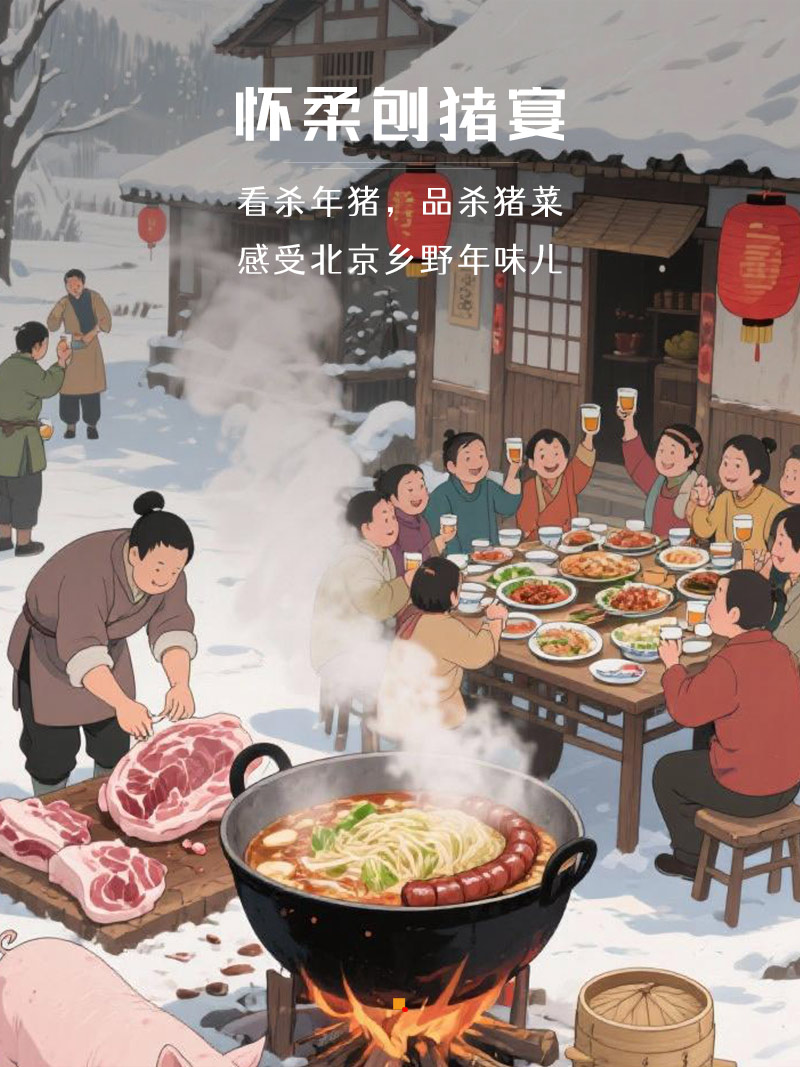 - 10:00|我们抵达怀柔农场,钻进热气蒸腾的刨猪宴现场,看一场传统杀猪宴的热闹光景,是冬日里最沸腾的人间烟火。沉浸式体验传统年俗,在喧腾的吆喝声里,提前解锁浓浓的新春氛围。
