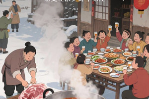 在热气蒸腾的农家院里,看一场传统杀猪宴的生动场景。大铁锅里酸菜血肠咕嘟翻滚,现切的猪肉带着土地的诚意,在柴火灶上化作一桌丰盛的杀猪菜。