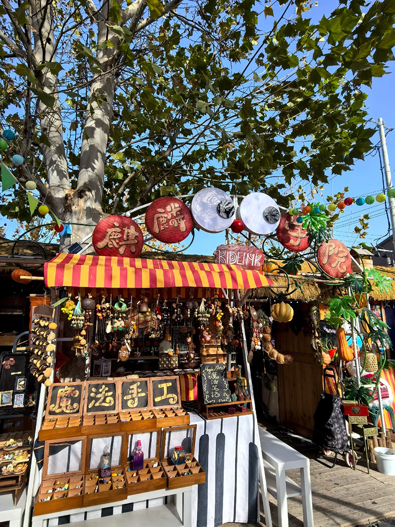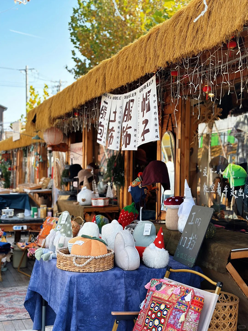 午后,转场至 「辛庄生活市集」。这里的节奏忽然轻缓下来:手作陶器泛着温润的光,农人篮子里装着沾泥带露的蔬菜。你可以淘一件旧物,做一件手工艺品,或只是捧一杯热饮,和卖花的大姐聊聊天。在这里,生活不是被消费的,而是被感受、被连接、被温柔创造的。